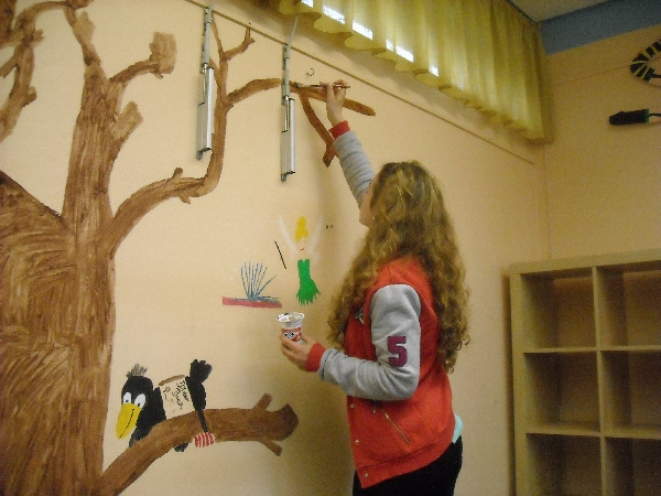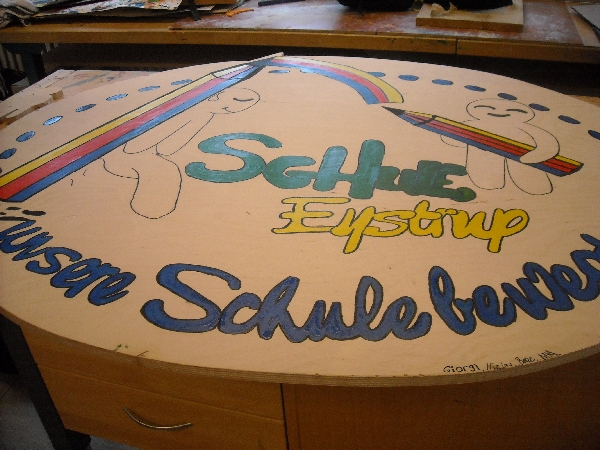 Unser Schullogo ist in - und jetzt auch auf tolle Art und Weise mehrmals im Gebäude auf Holz zu sehen!