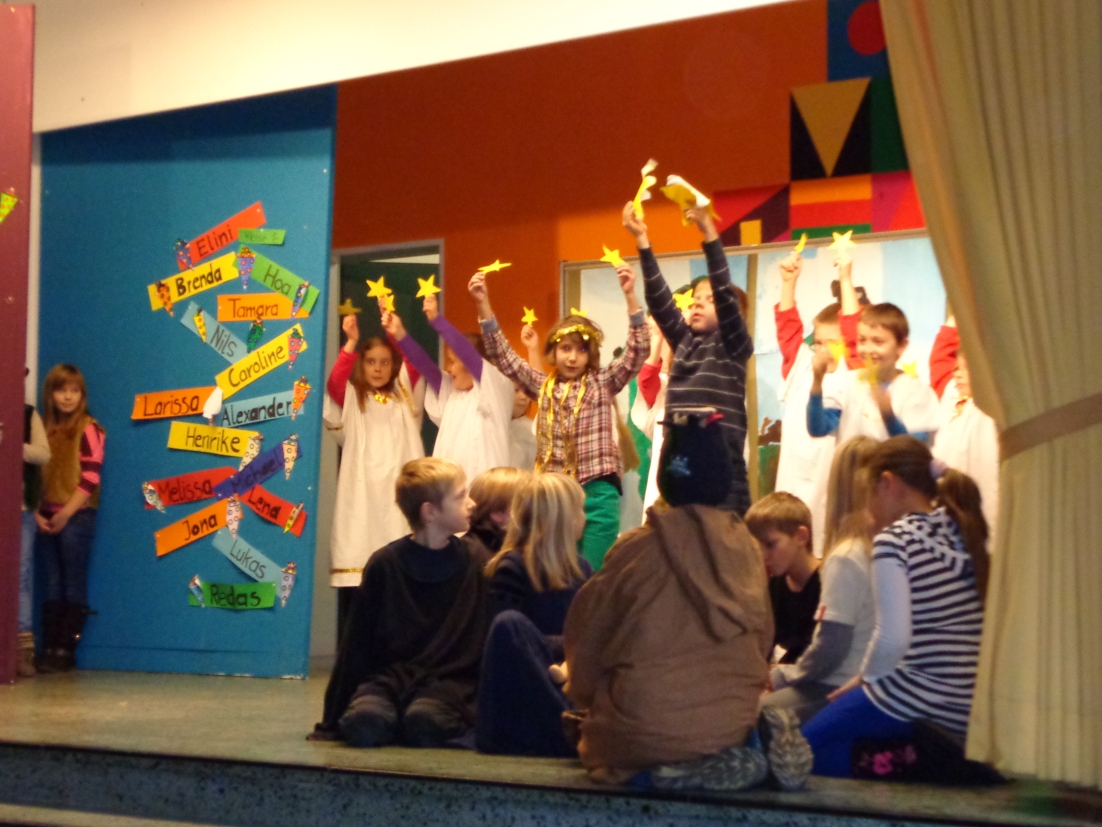 Die Klasse 3b zeigte ein Theaterstück über eine Krippe, Tiere und ein neugeborenes Kind