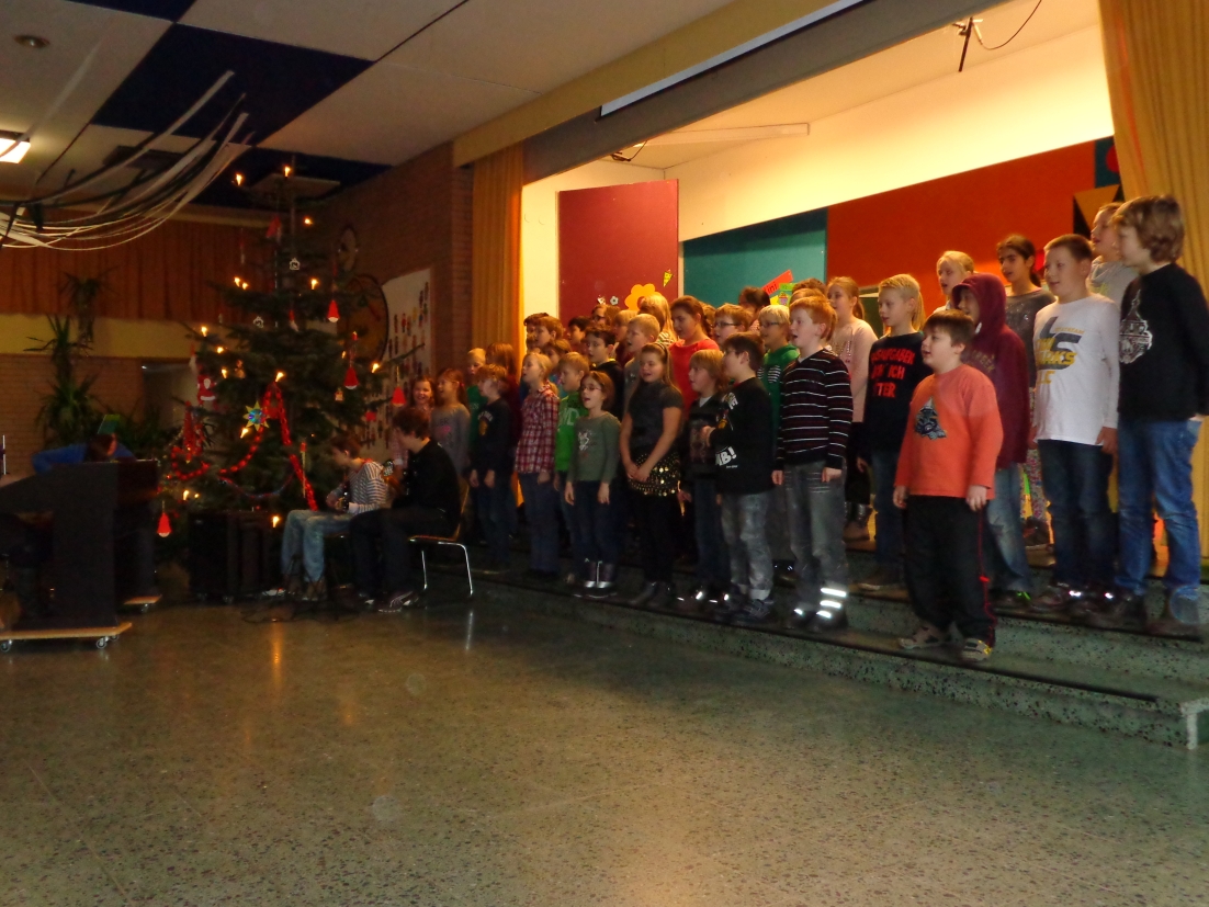 in der Aula zusammen, um gemeinsam ein kleinen Moment Besinnlichkeit in die Schule zu bringen.